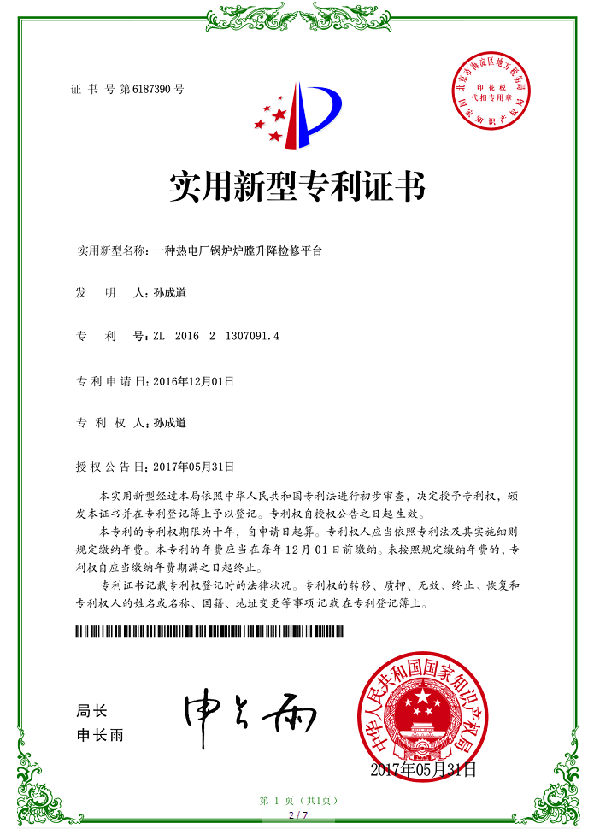 專利碳鋼結(jié)構(gòu)強(qiáng)度高、重量輕,比鋁合金材質(zhì)的實(shí)用性強(qiáng),經(jīng)濟(jì)耐用。使用中遇到損壞變形,電廠檢修人員容易整形維修!